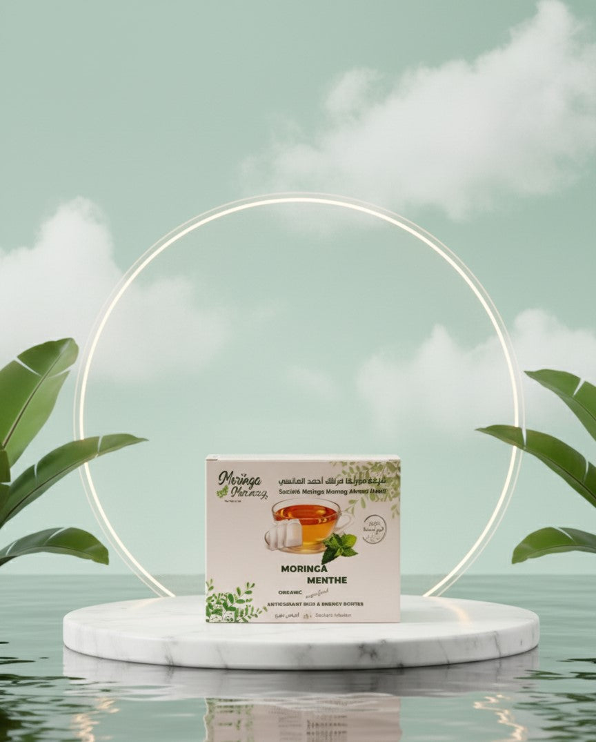 L’infusion de moringa à la menthe vous offre un moment de détente raffiné, alliant énergie pure et fraîcheur naturelle.
